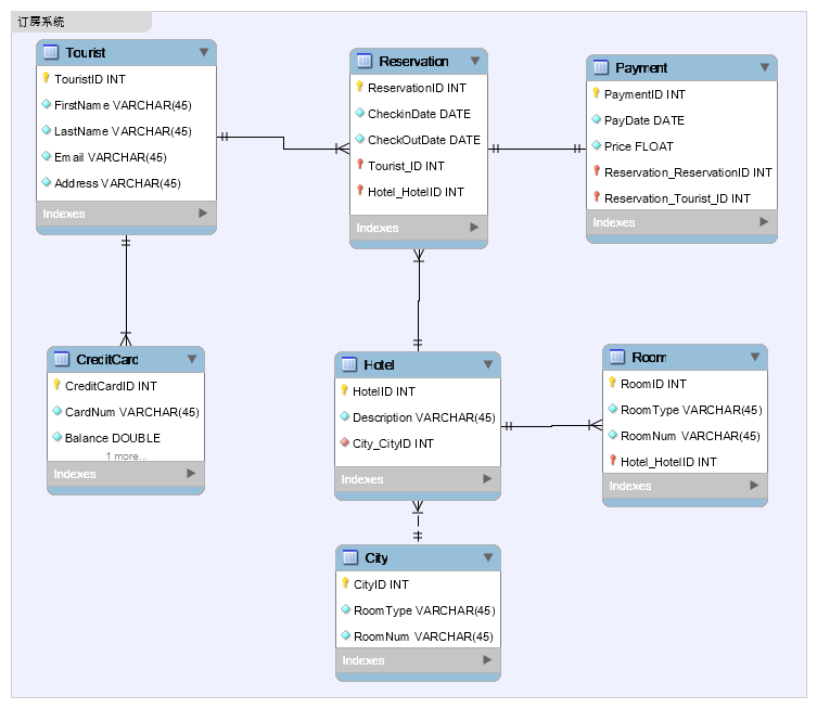 根据上面的领域模型,可以设计出下面ER模型